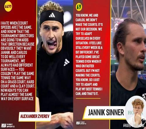 诚然在兹维列夫发声之前,费德勒在做客罗迪克的播客节目中谈到过这一件事,但毕竟人家已经归隐,算不得直接受益者,而兹维列夫作为世界前五,还如此吐槽就显得有些以小人之心度君子之腹了。对于此事,阿卡还没有做出回应,不过辛纳则公开回应:又不是我和卡洛斯造的球场。