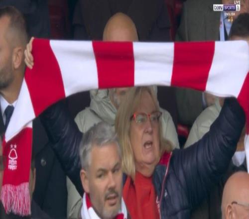 赛前,英超官方转播信号照例去捕捉两队教练。但不曾想,当镜头给到马雷斯卡的时候,他的面部正好被森林主场一名球迷举起的围巾挡住了。