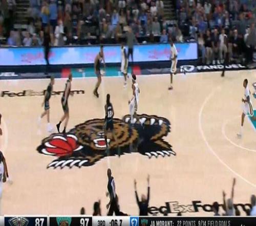 第三节比赛,莫兰特手感火热,单节7投6中拿到13分1助攻1抢断,主导灰熊逆转鹈鹕,最多时灰熊反超鹈鹕两位数。