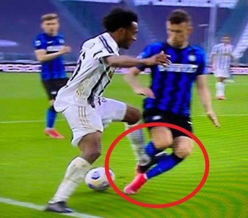 对手主动伸脚找点球的事情,并不是第一次发生在国际米兰身上。2020/21赛季的意甲联赛第37轮,夸德拉多在禁区内主动将脚踢在佩里西奇的腿上,随即倒地,主裁判居然无视夸德拉多的假摔,判给尤文点球。最终,尤文依靠着裁判的爱护,再次击败蓝黑军团。