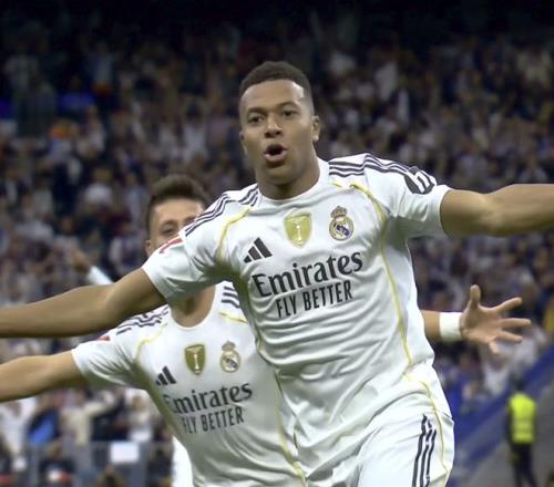 本场比赛第14分钟,姆巴佩禁区外不停球凌空射门打出一脚技惊四座的世界波,进球后的姆巴佩也是兴奋庆祝,可惜越位了。第22分钟,贝林厄姆轻巧摆脱防守,送出一脚直塞球,助攻姆巴佩单刀推射破门,这球没越位,皇马领先。姆巴佩连续4场西班牙国家德比取得进球,9次面对巴萨已攻入12球。姆巴佩连续7轮西甲进球,刷新个人纪录。
