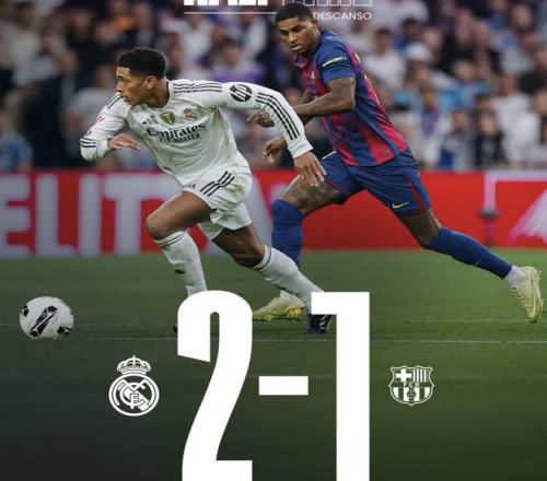 21!皇马胜巴萨5分领跑,姆巴佩破门创纪录,贝林传射佩德里染红