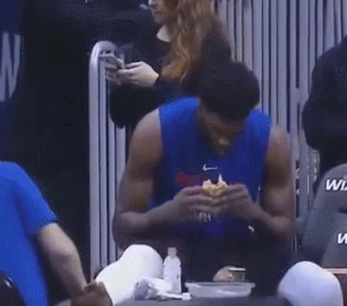 恩比德在赛前总要边吃边按摩,从葡萄到芝士汉堡无所不包,甚至比赛快开始之前在赛场里吃。如今也被贝弗利在播客里狠狠吐槽:“习惯很重要,努力训练很重要,如果你不尊重比赛,比赛总会让你付出代价。我不会说他赛前吃芝士汉堡是造成他现状的原因,但这么做确实对你没好处。”