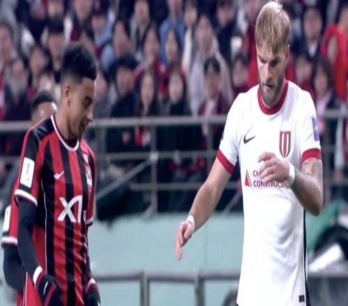 之后,古尔芬克尔传中,费利佩利用身体优势卡位成功后,没有传给周定洋,而是自己射门,皮球被防守球员挡出,镜头给到场边,徐正源相当遗憾。