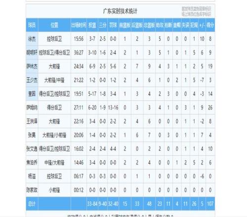 其中外援萨林杰得到19分、奎因得到14分、萨姆纳得到26分。外援累计得到59分,外援得分占比约为55.14%。